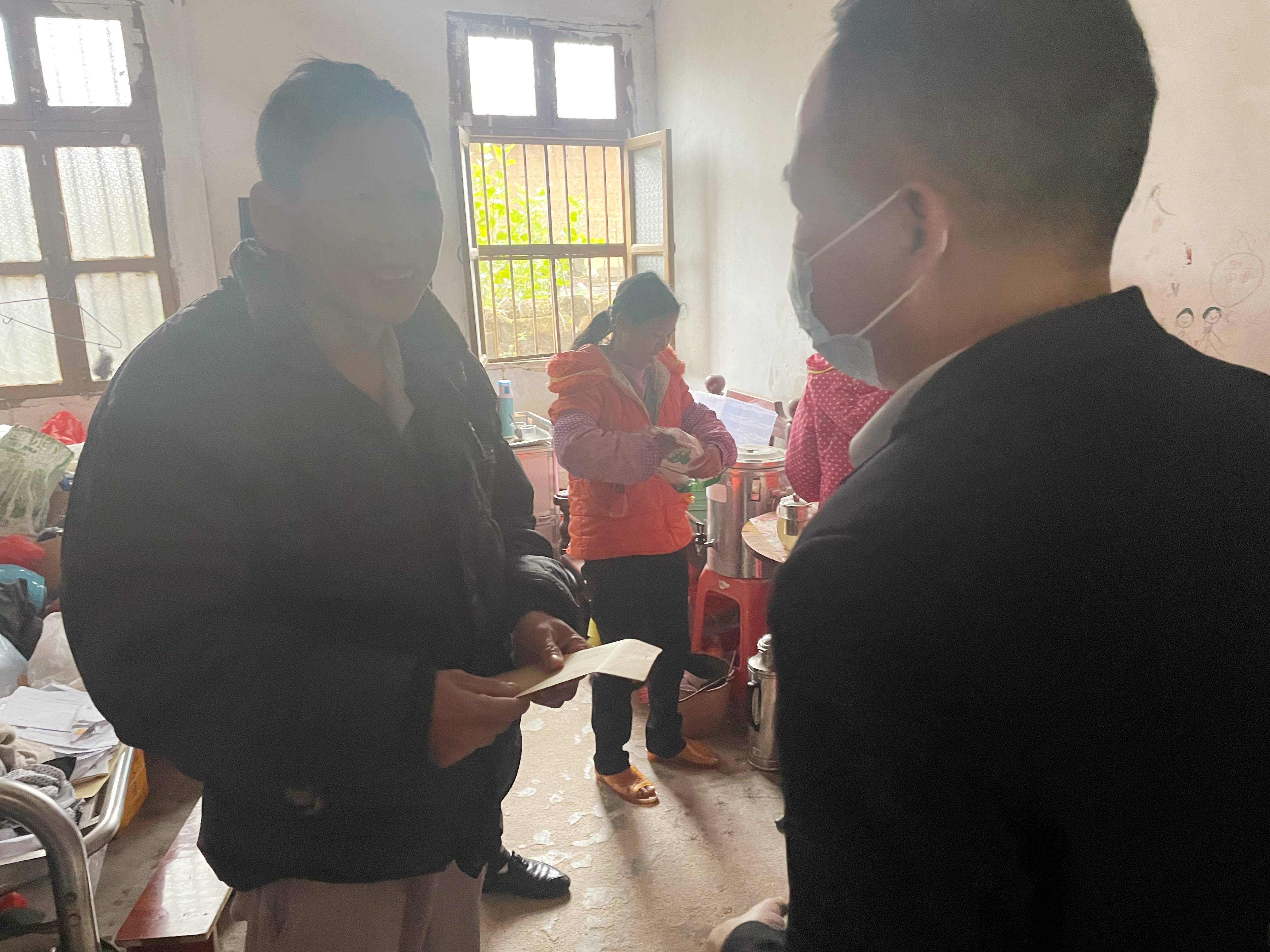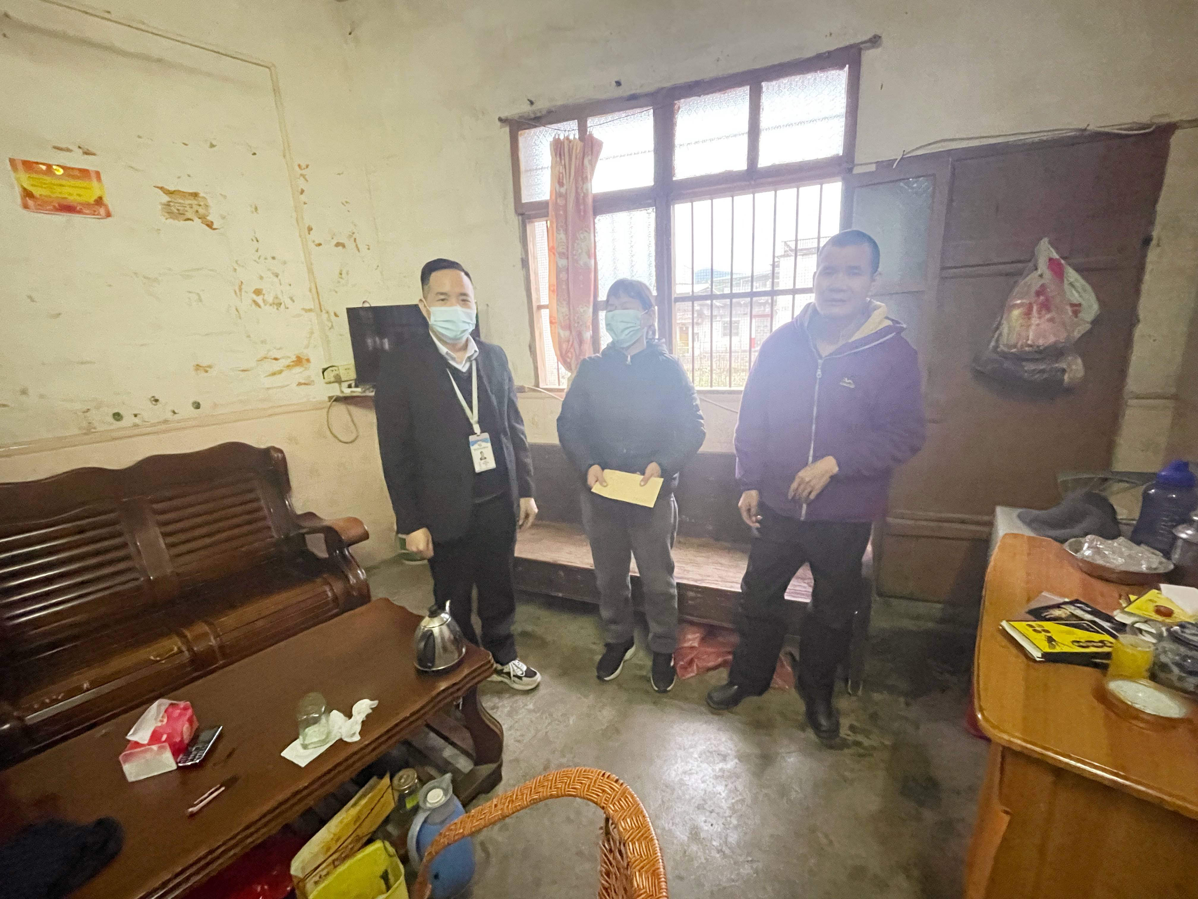 公司工會主席余佛龍與暗石村委會遠(yuǎn)忠書記等村委干部一同走訪慰問了4戶貧困學(xué)生和困難戶,向他們發(fā)放慰問金,并對他們致以節(jié)日祝福和關(guān)愛,把深切的關(guān)懷送到群眾的心坎上。