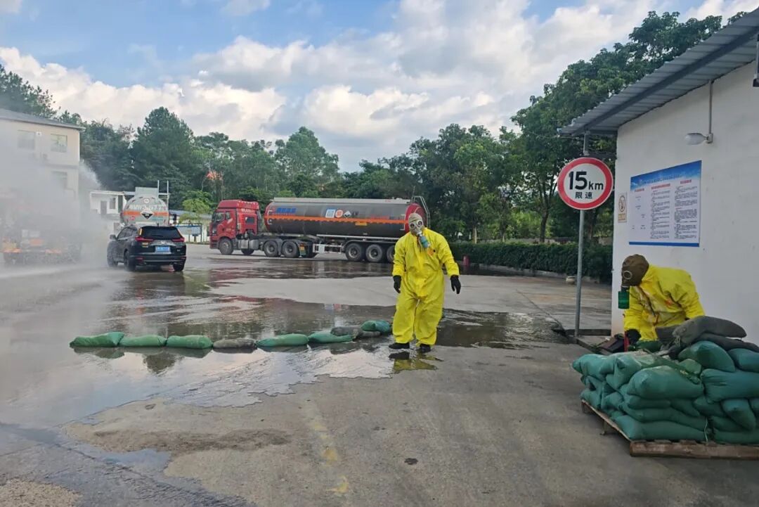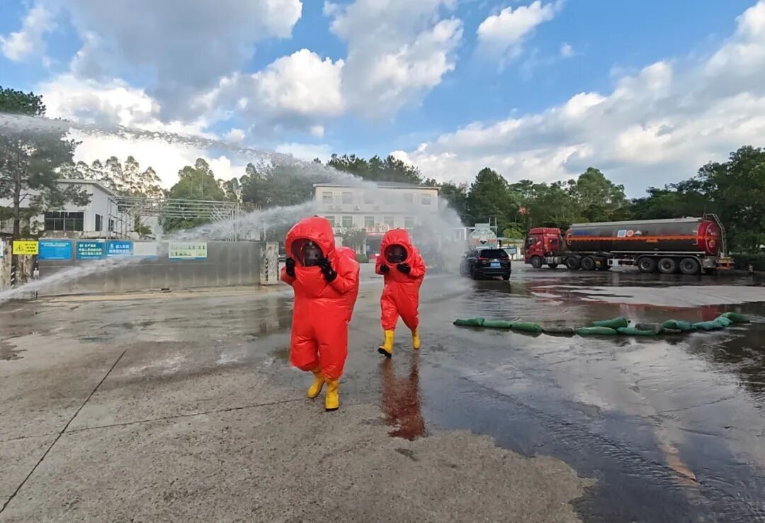 為進一步提高員工安全意識,檢驗公司生產(chǎn)安全事故應急預案體系的科學性、銜接性和可操作性,增強對氨水泄漏事故專項應急處置能力,確保事故發(fā)生后能夠及時、高效、有序地進行應急處置工作,2025年10月16日下午,海龍化工及海龍運輸公司在文?;S區(qū)組織開展了相關(guān)應急演練活動,公司董事長賴仕海先生出席了此次活動。